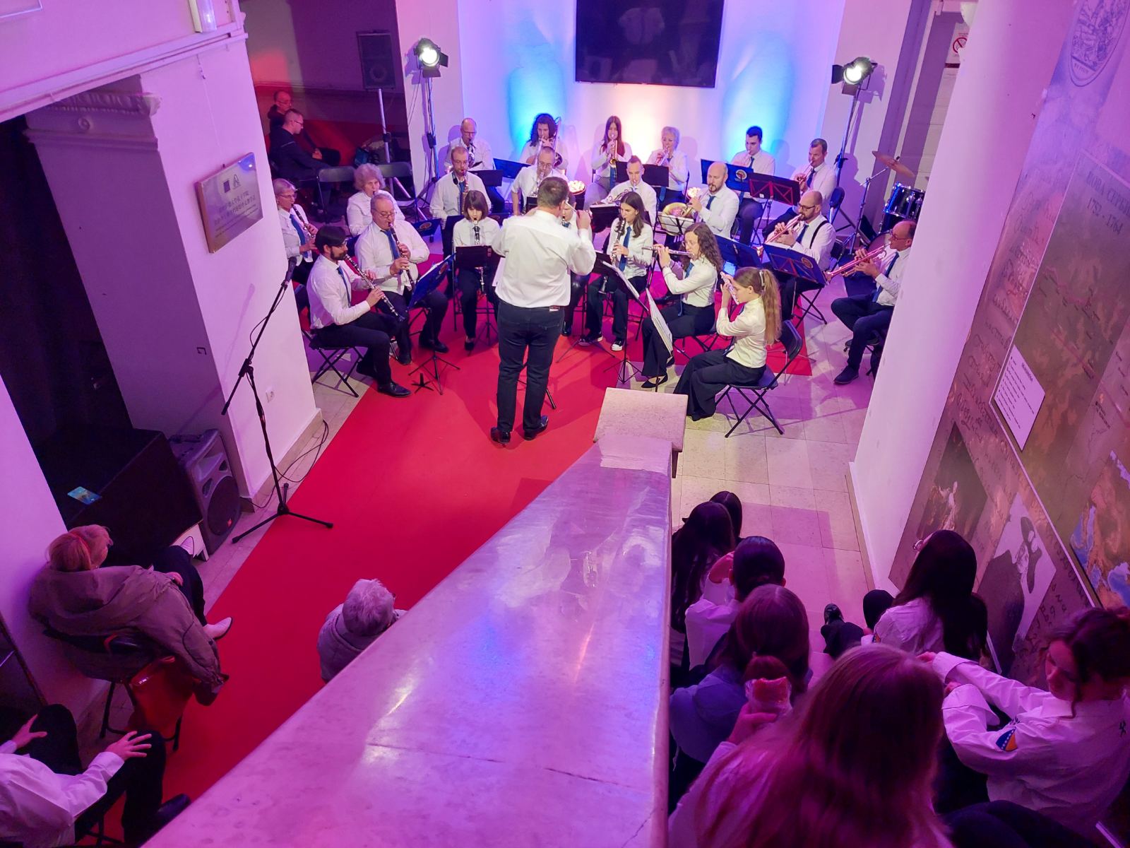 Publika je tokom večeri čula raznovrstan program — od filmske i popularne muzike do marševa, polki i poznatih kompozicija, među kojima Gonna Fly, Tequila, Sway, Szamosmenti, My Way, Instant Concert, The Blues Brothers i druge, kao i zajedničko izvođenje sevdalinke Snijeg pade.