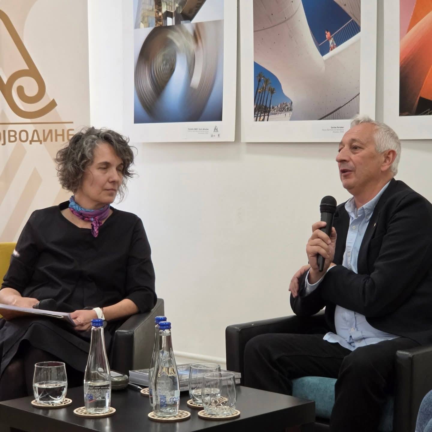 Након свечаног отварања уследио је разговор са аутором, који је водила Татјана Дадић-Динуловић, редовни професор Факултета техничких наука у Новом Саду.