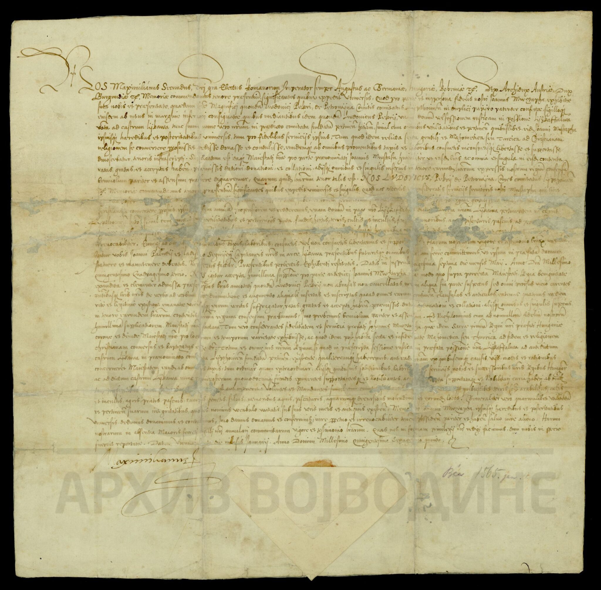 Потврда о племству коју цар Максимилијан II издаје Јовану Мустафи (Musztapha), Турчину, који је прешао у хришћанску веру, као и свих права, њему и његовим наследницима, на посед који је именовани добио даровницом из 1543. године од жупана жупаније Липто, Лудвига Пекри де Петровине (Pekrÿ de Petrowÿna).