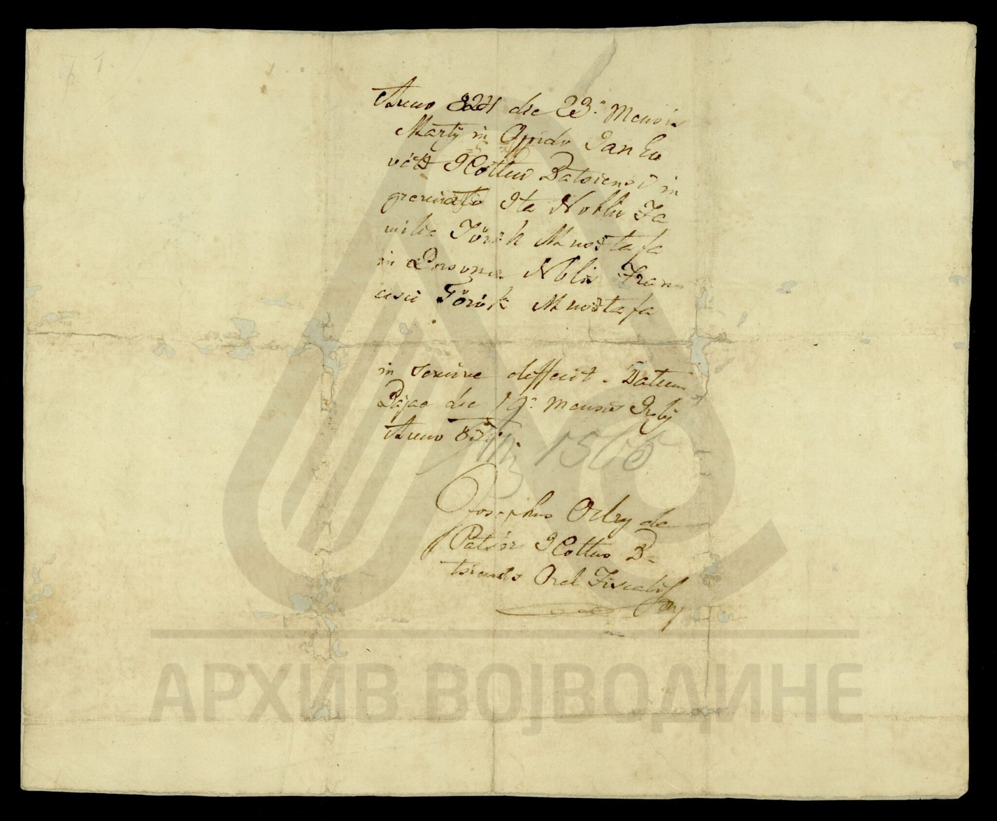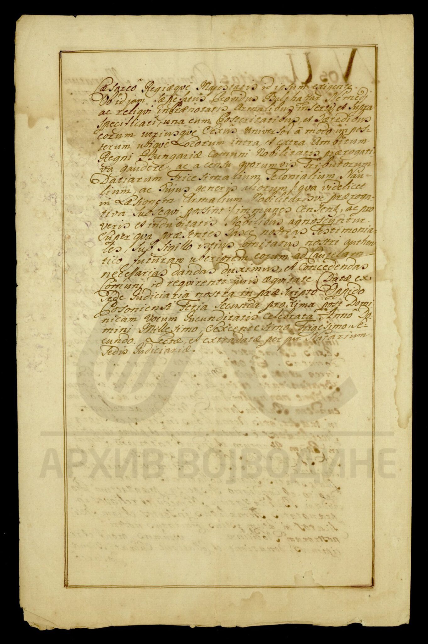 Хартија, латински, 1 лист (велики формат), рукопис, очуван, без печата.
