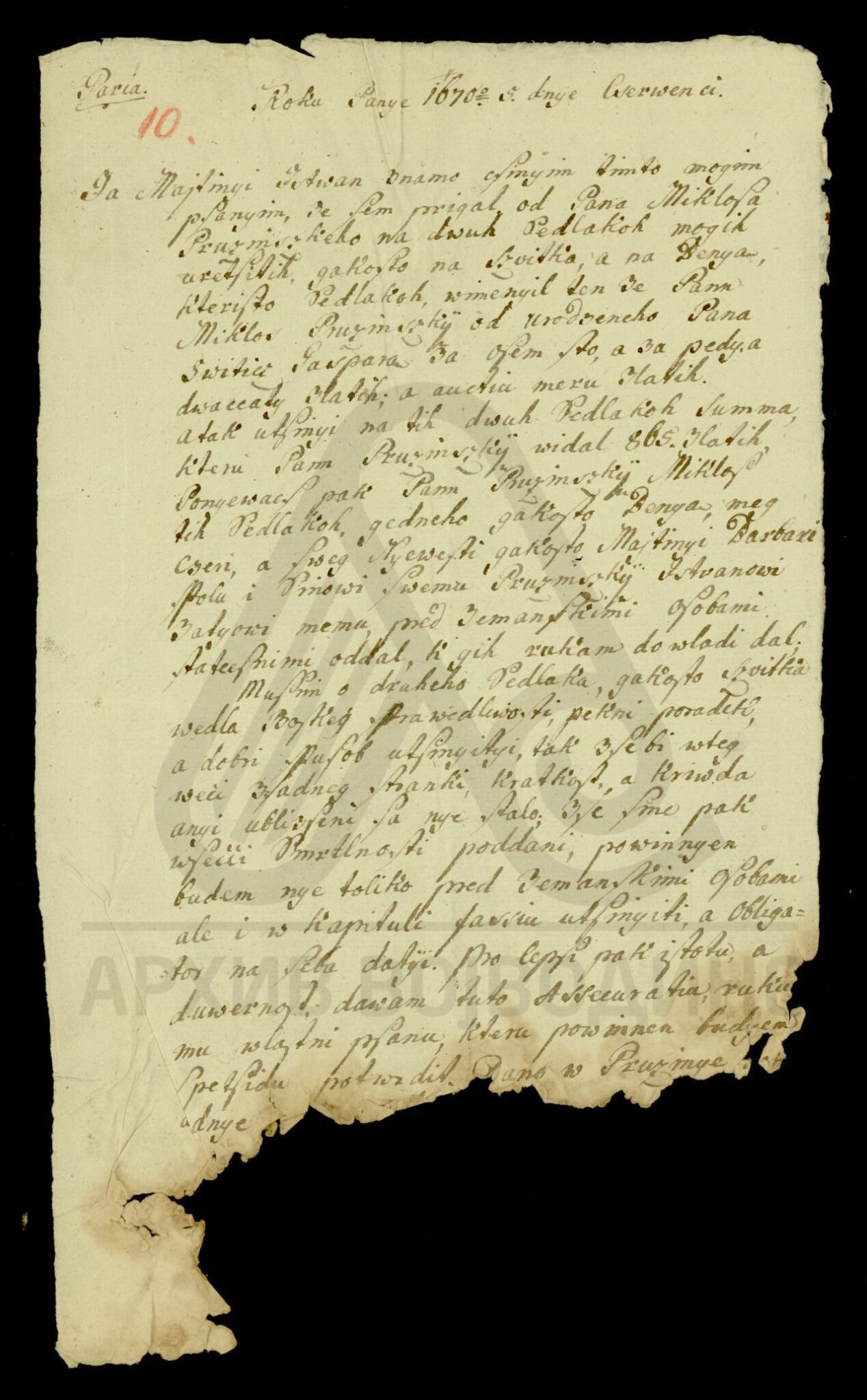 Хартија, латински, словачки језик, 5 листова, рукопис, оштећен, без печата.