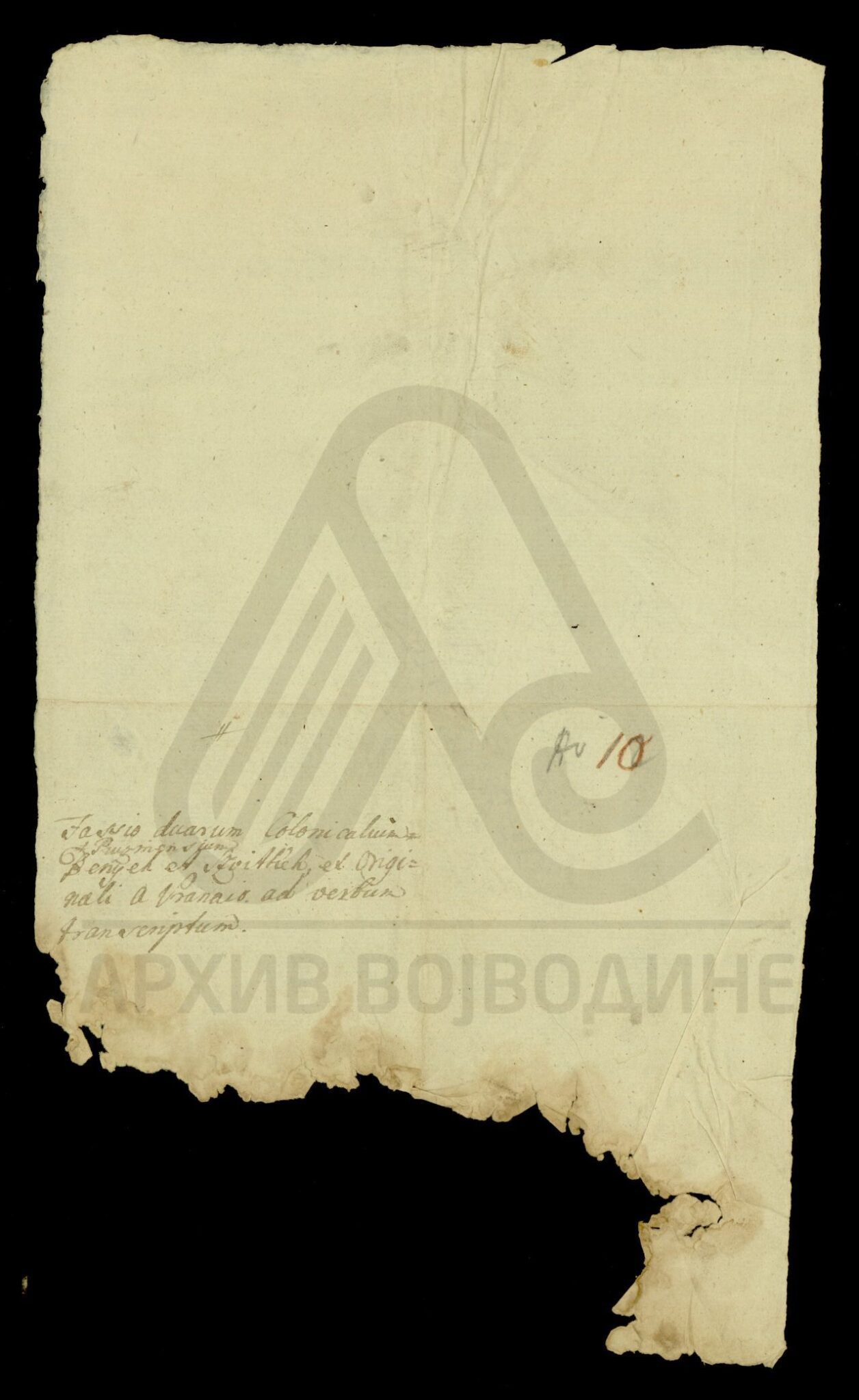 Хартија, немачки, српски језик, 2 листа, рукопис, очуван; печат оштећен.