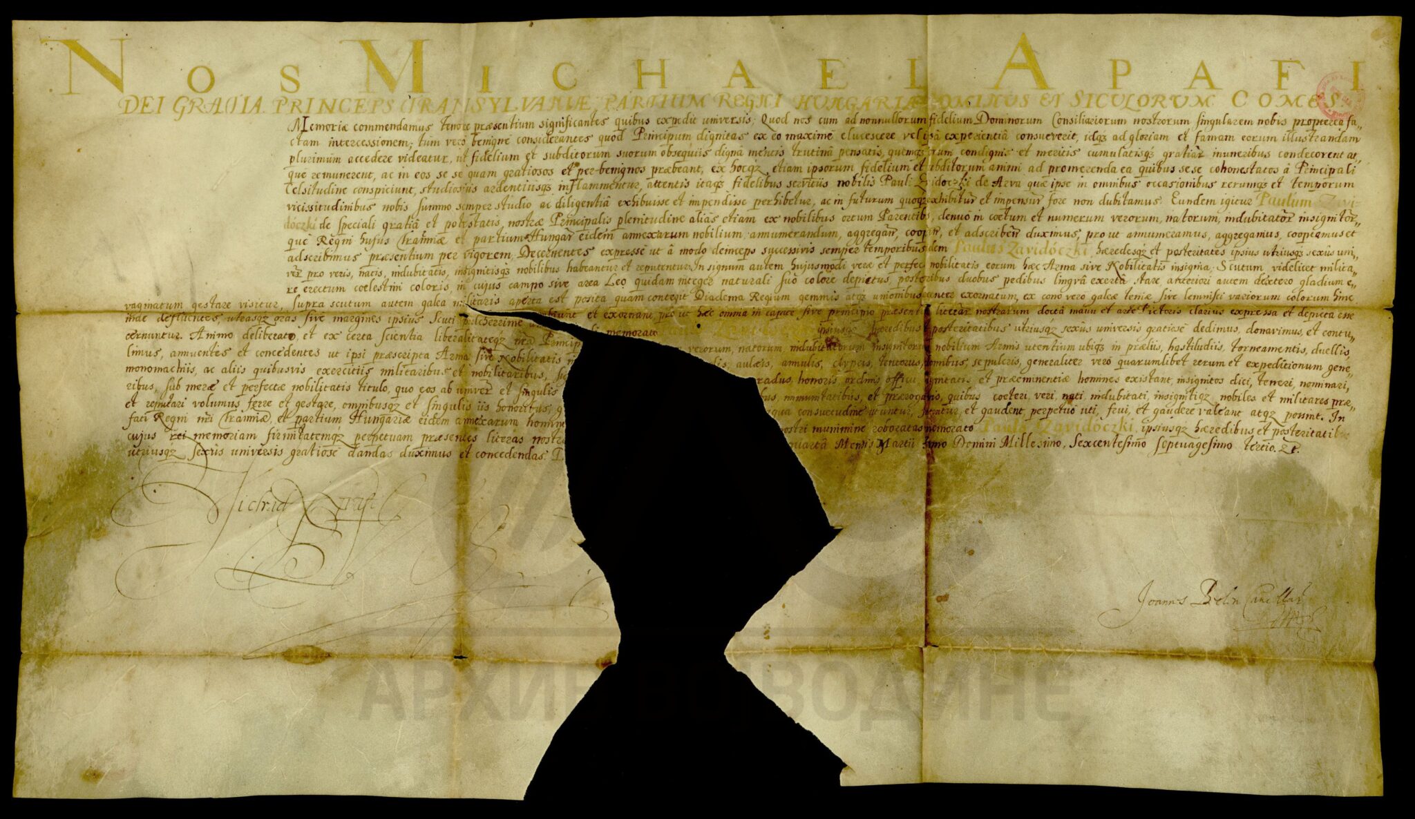 Диплома кнеза Трансилваније Михаила Апафија (Michael Apafi) о даровању племићке титуле Павлу Завидоцком (Zavidóczki) и његовим наследницима оба пола, уз право употребе племићког печата.