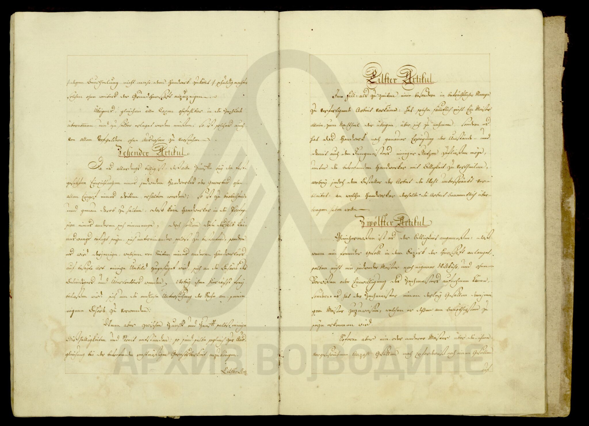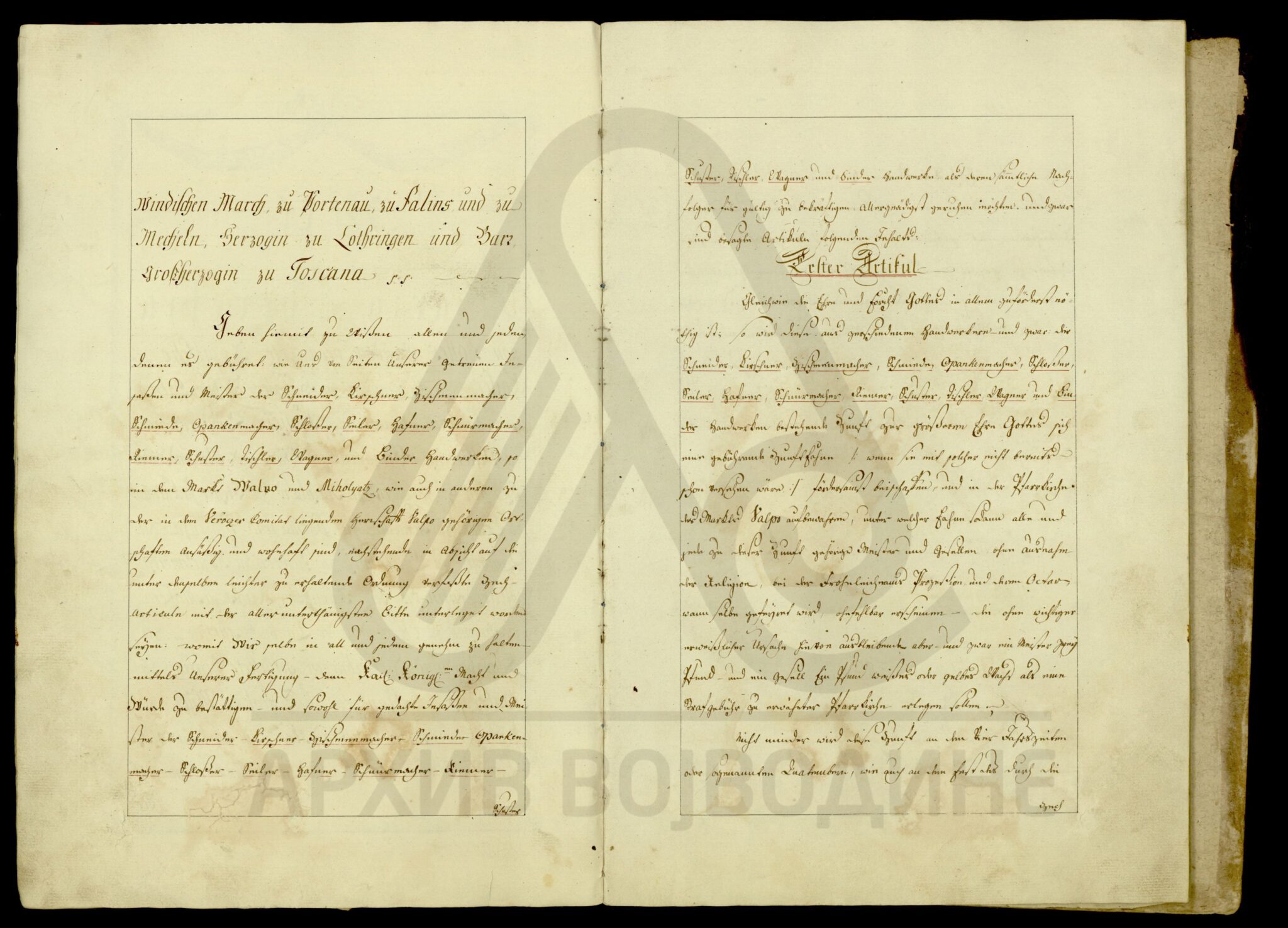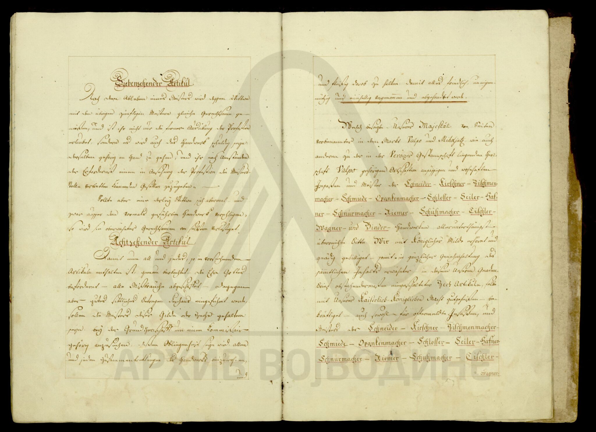 Уредба царице Марије Терезије којом се регулишу права и обавезе (сталежа) кројача, ћурчија, чизмара, ковача, опанчара, бравара, ужара, грнчара, ременара, тесара, обућара, столара, колара и везача у Валпову, Михољцу, као и осталим местима који припадају Васповском властелинству на територији Вировитичке жупаније.