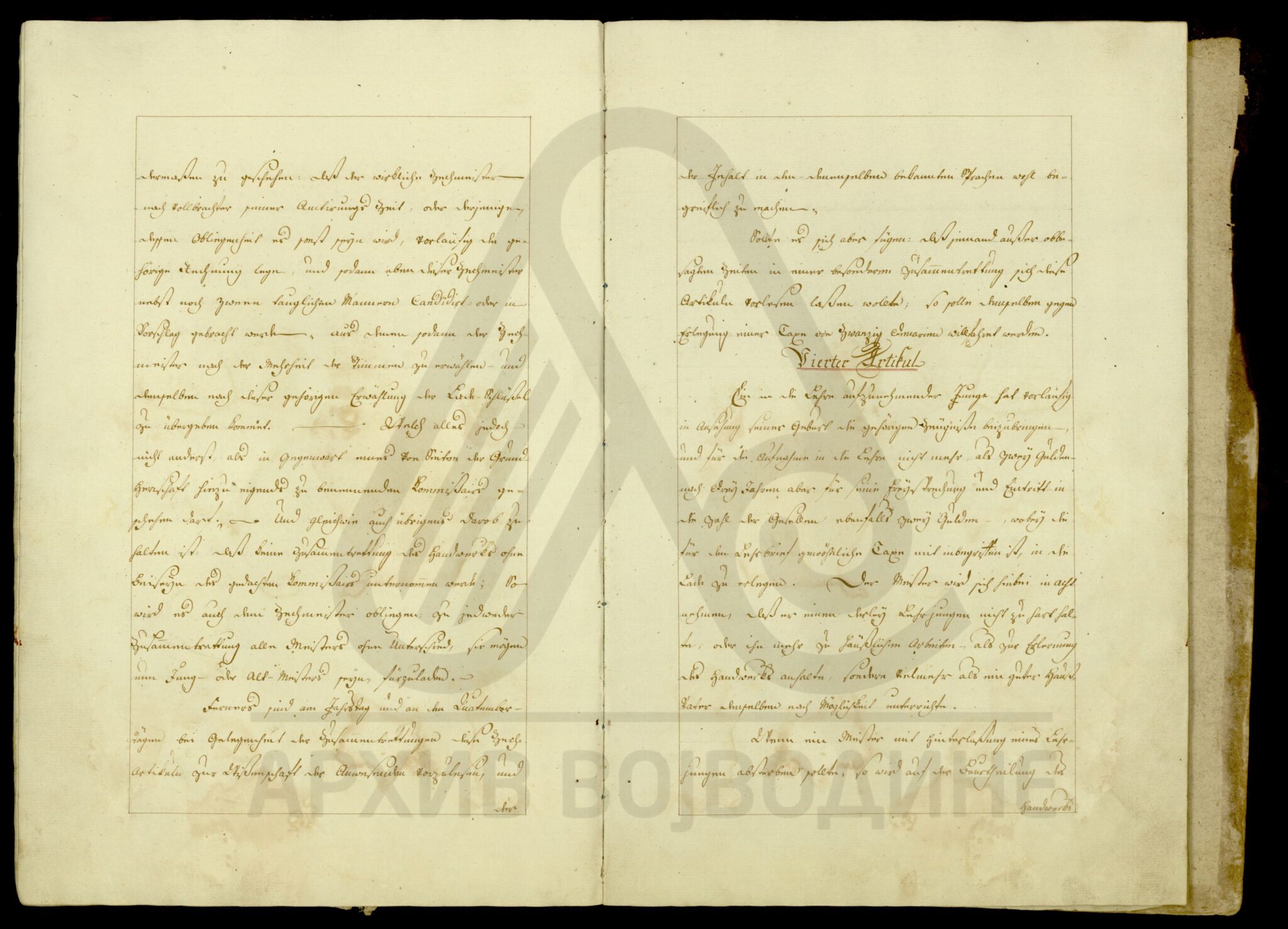 Хартија, немачки језик, 18 листова, рукопис (облик књиге тврдог повеза), очувана, печат службеника.