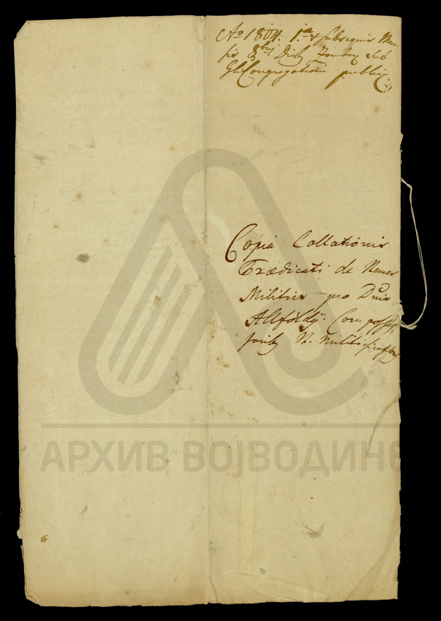 Хартија, латински језик, 1 лист (велики формат), рукопис, очуван, без печата.