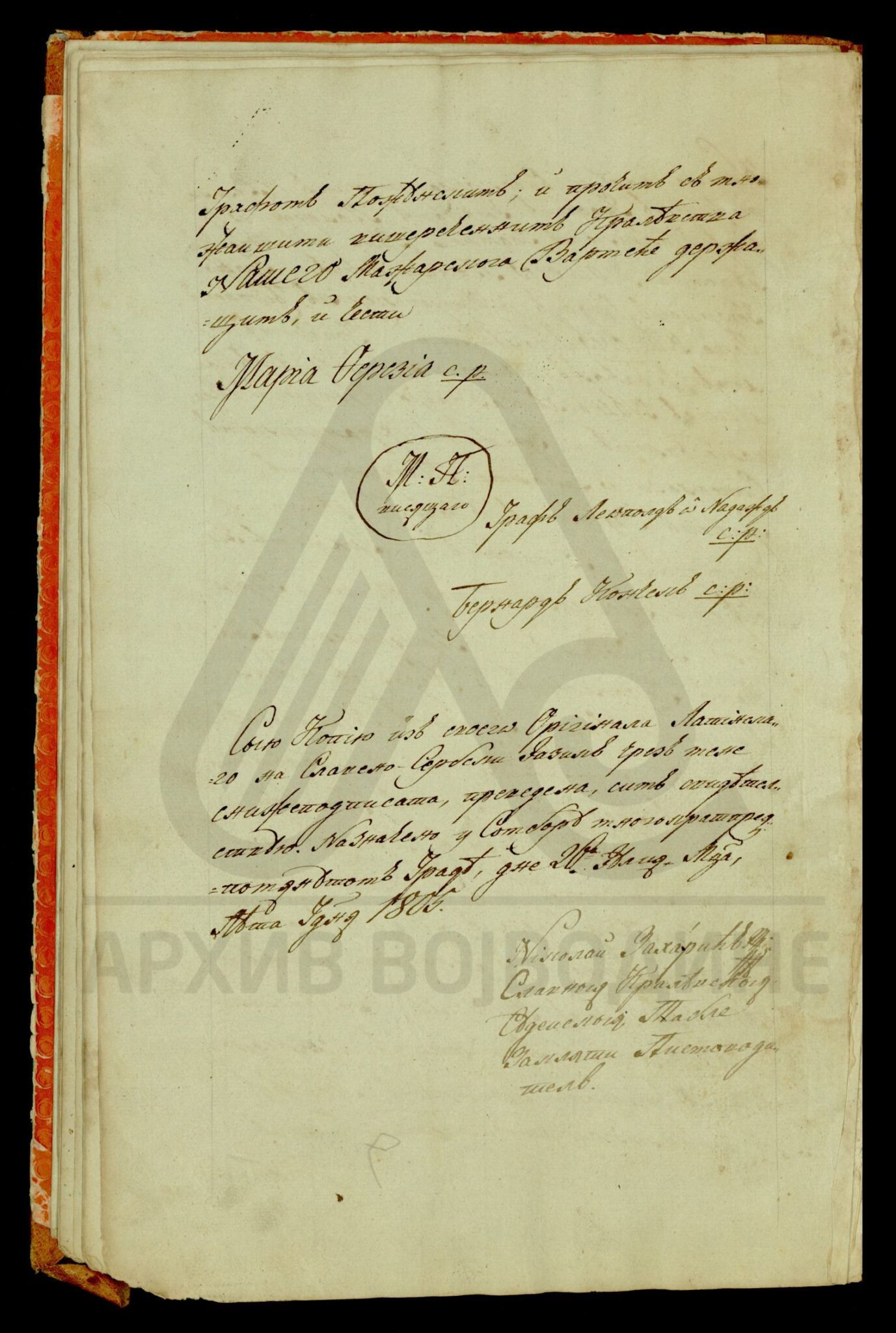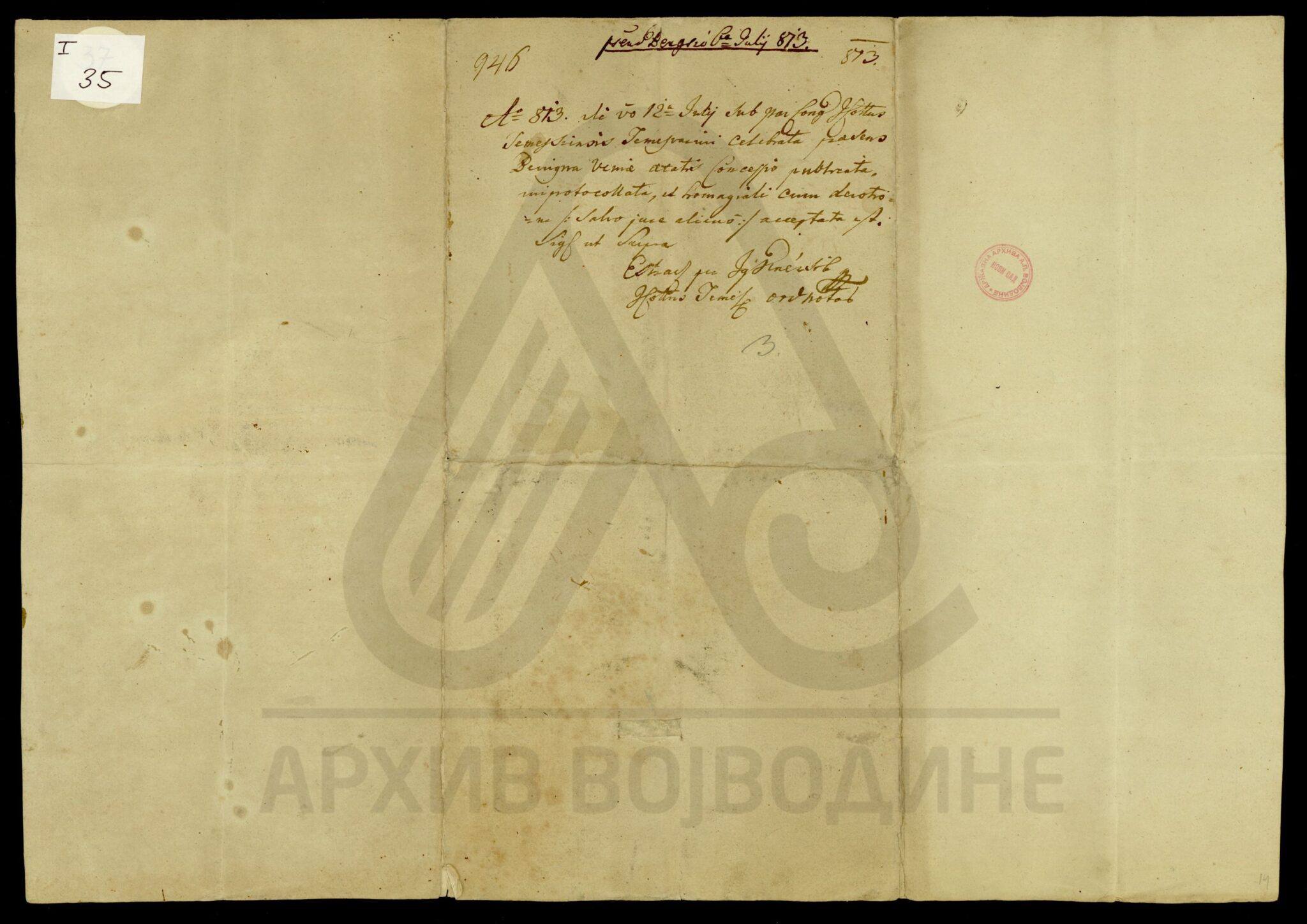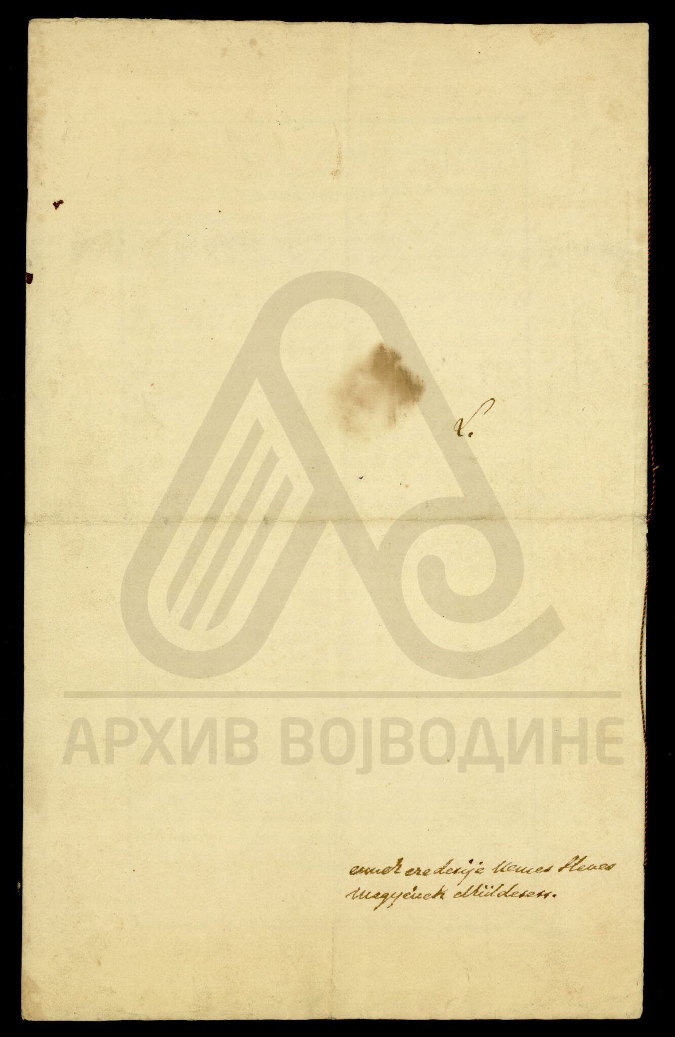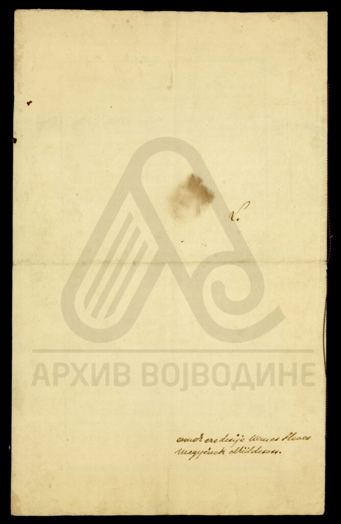 Хартија, славеносрпски језик, 1 лист (велики формат), рукопис, делимично оштећен, суви печат.