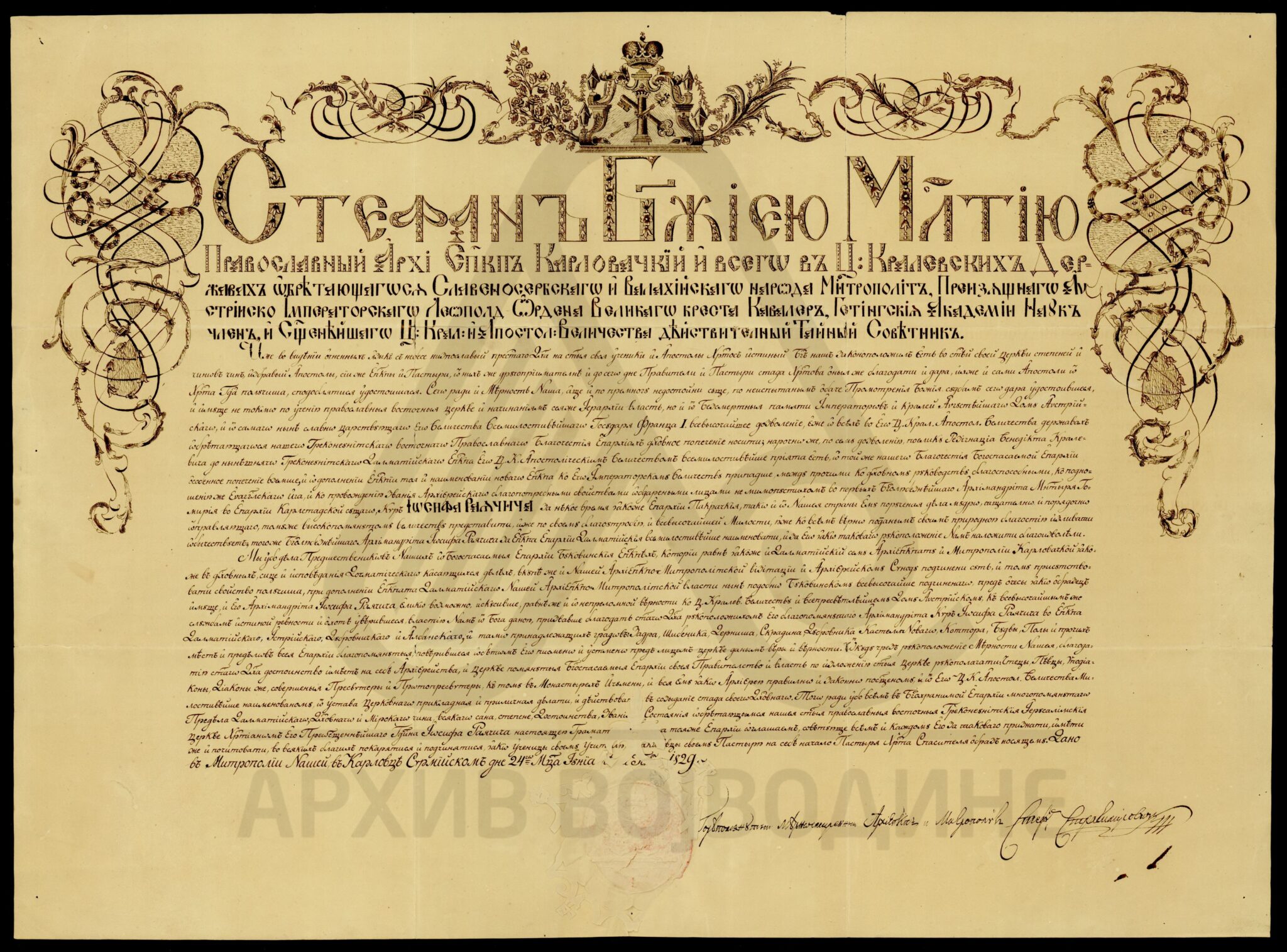 Декрет карловачког архиепископа и митрополита Стефана Стратимировића о наименовању пакрачког епископа, Јосифа Рајачића за епископа Далматинске епархије.