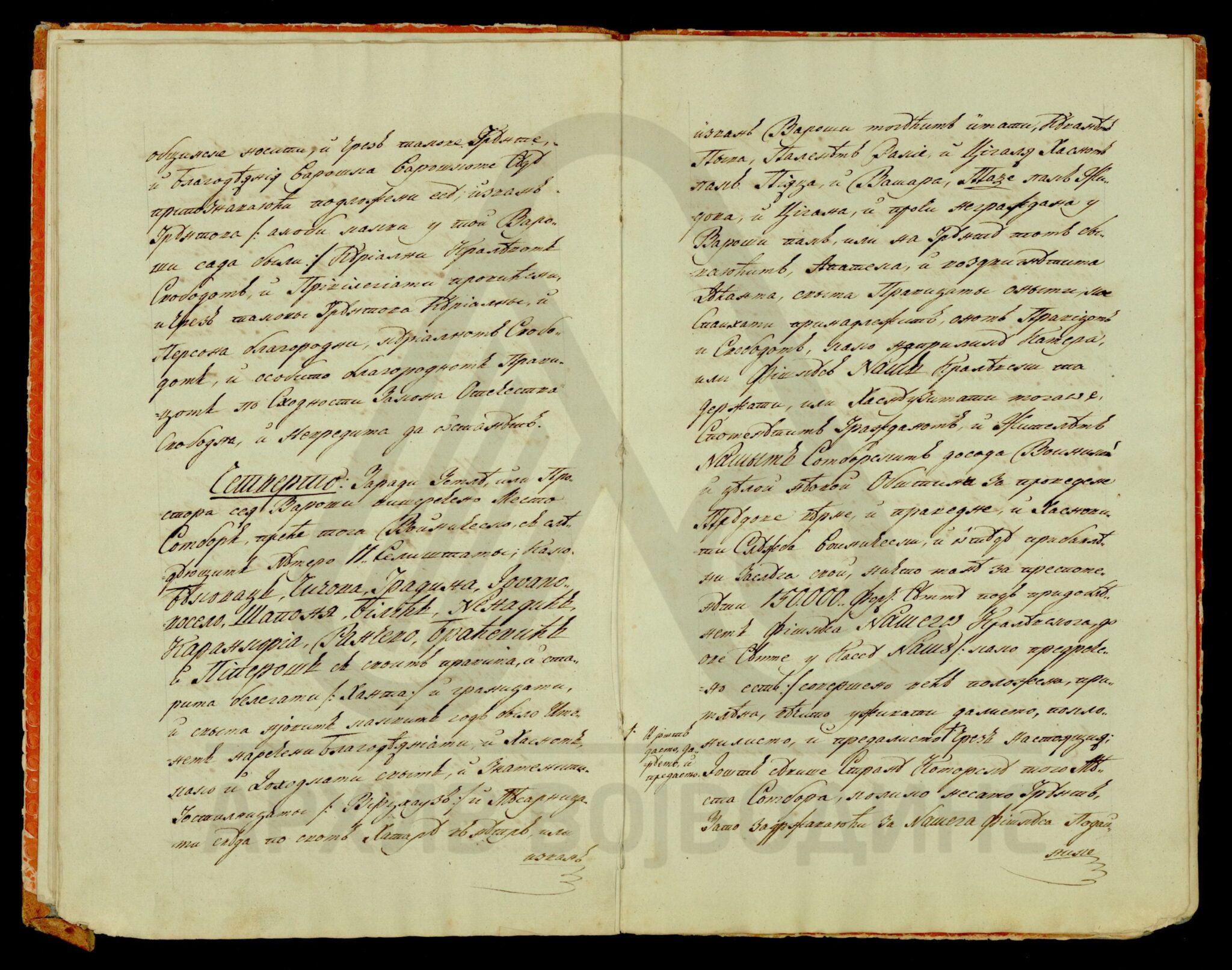 Хартија, славеносрпски језик, 18 листова, рукописна књига (oблик књиге тврдог повеза), очувана, без печата. Препис привилегије којом царица Марија Терезија проглашава Сомбор слободним и краљевским градом.