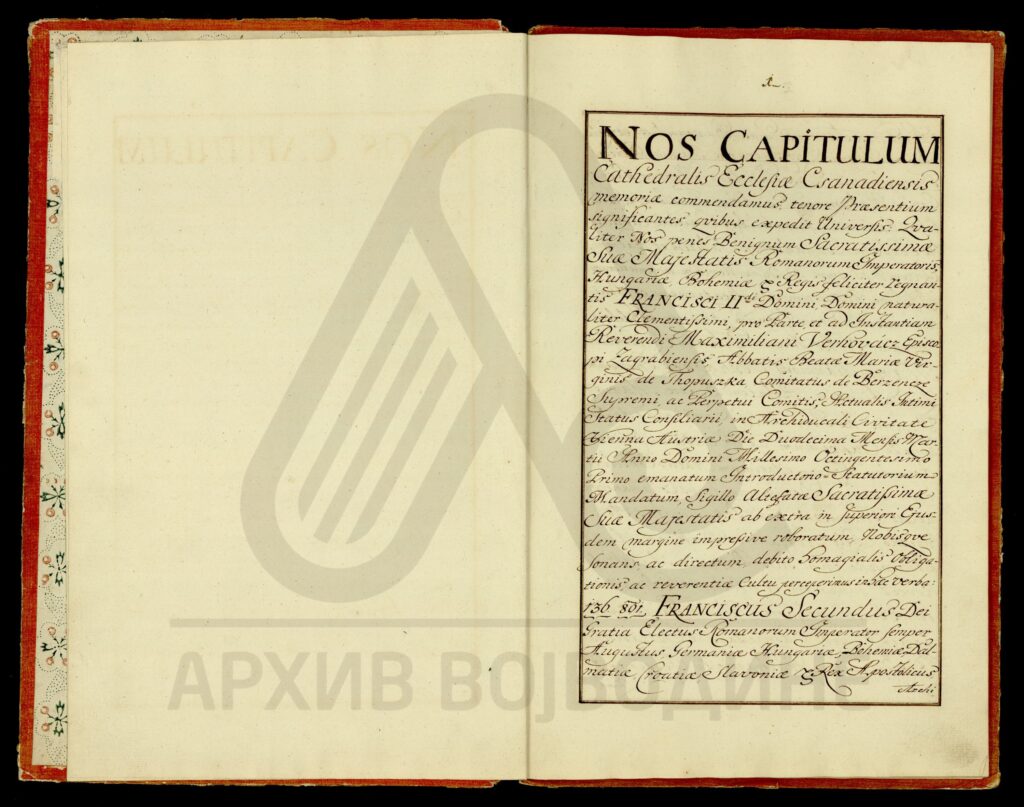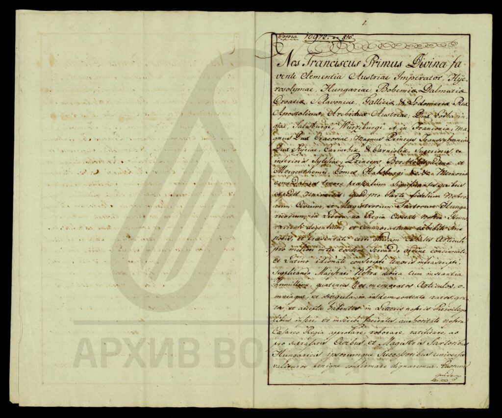 Привилегија аустријског цара Франца I издата угарским кројачким еснафима (hungaricorum sartorum cehalium) Слободног и краљевског града Темишвара.