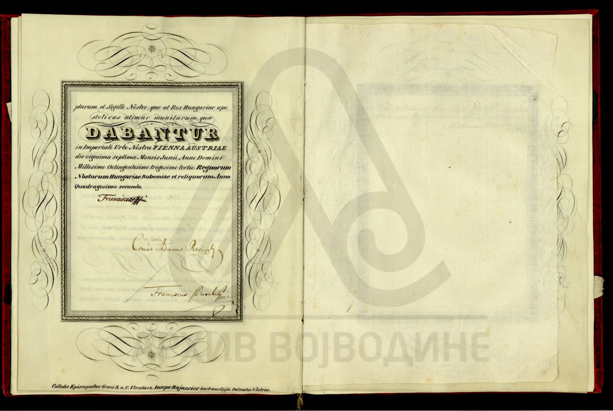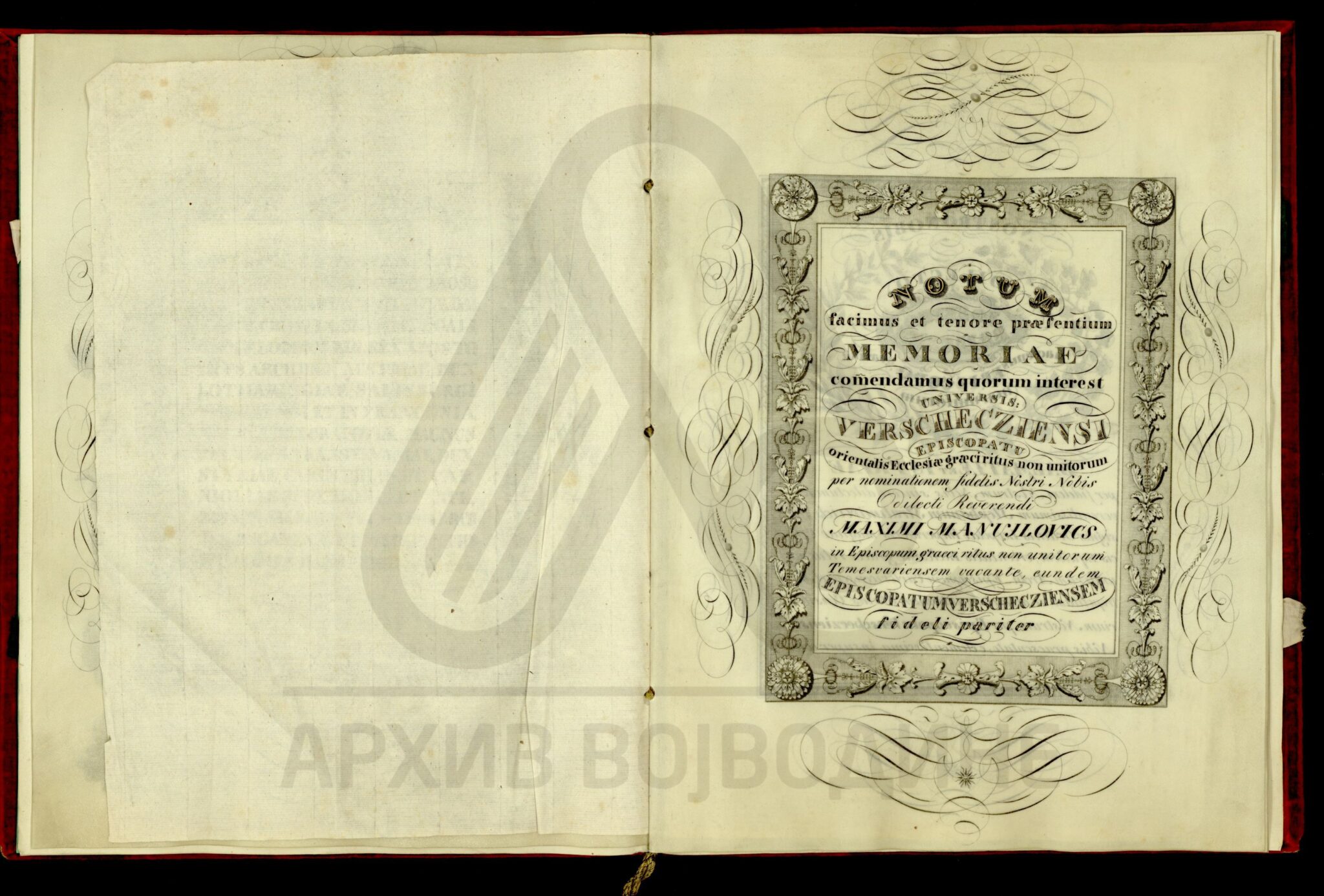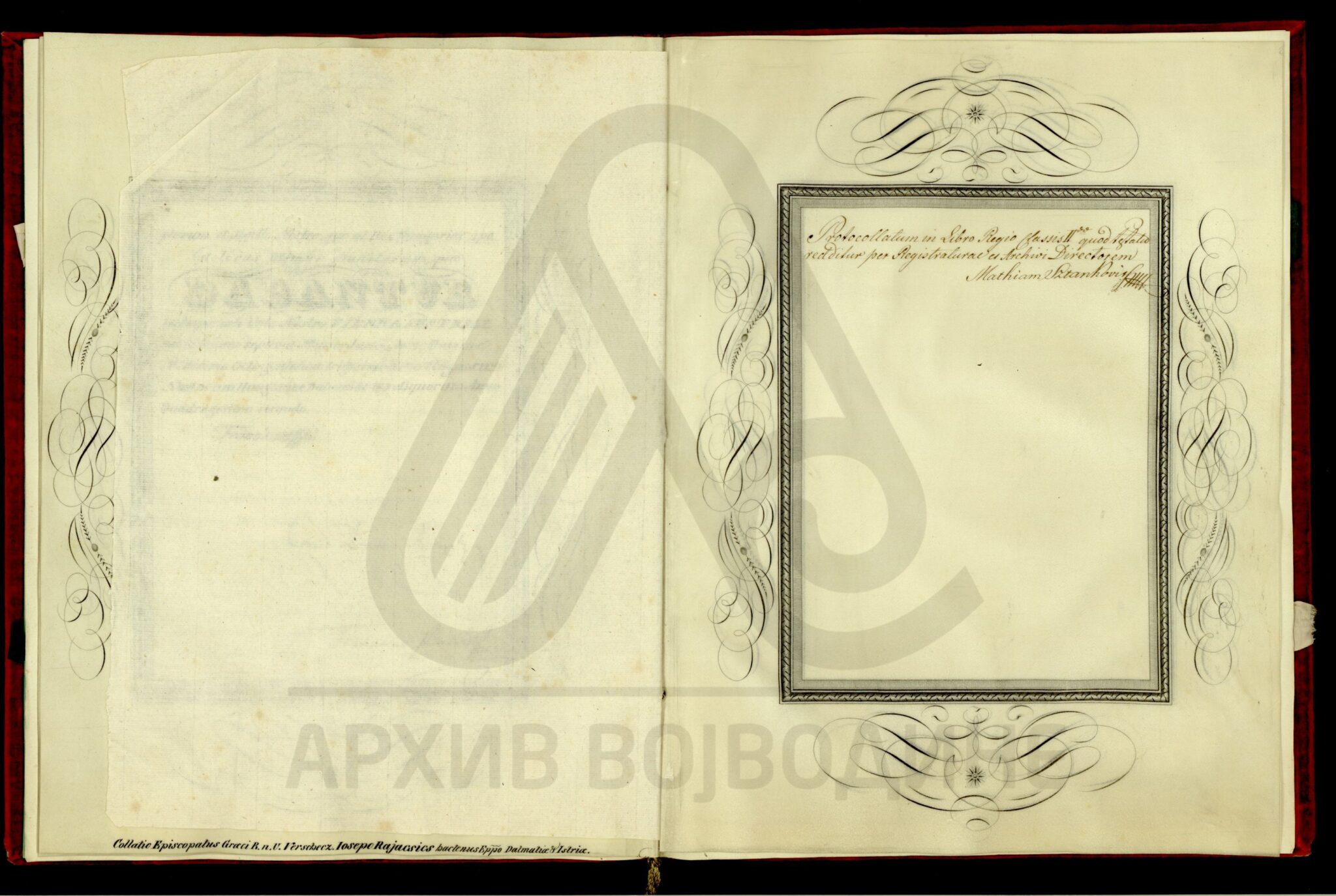 Резолуција цара Франца I о постављењу далматинског епископа Јосифа Рајачића за вршачког епископа, на место Максима Манујловића (Manuilovits) који је премештен у Темишварску епархију.