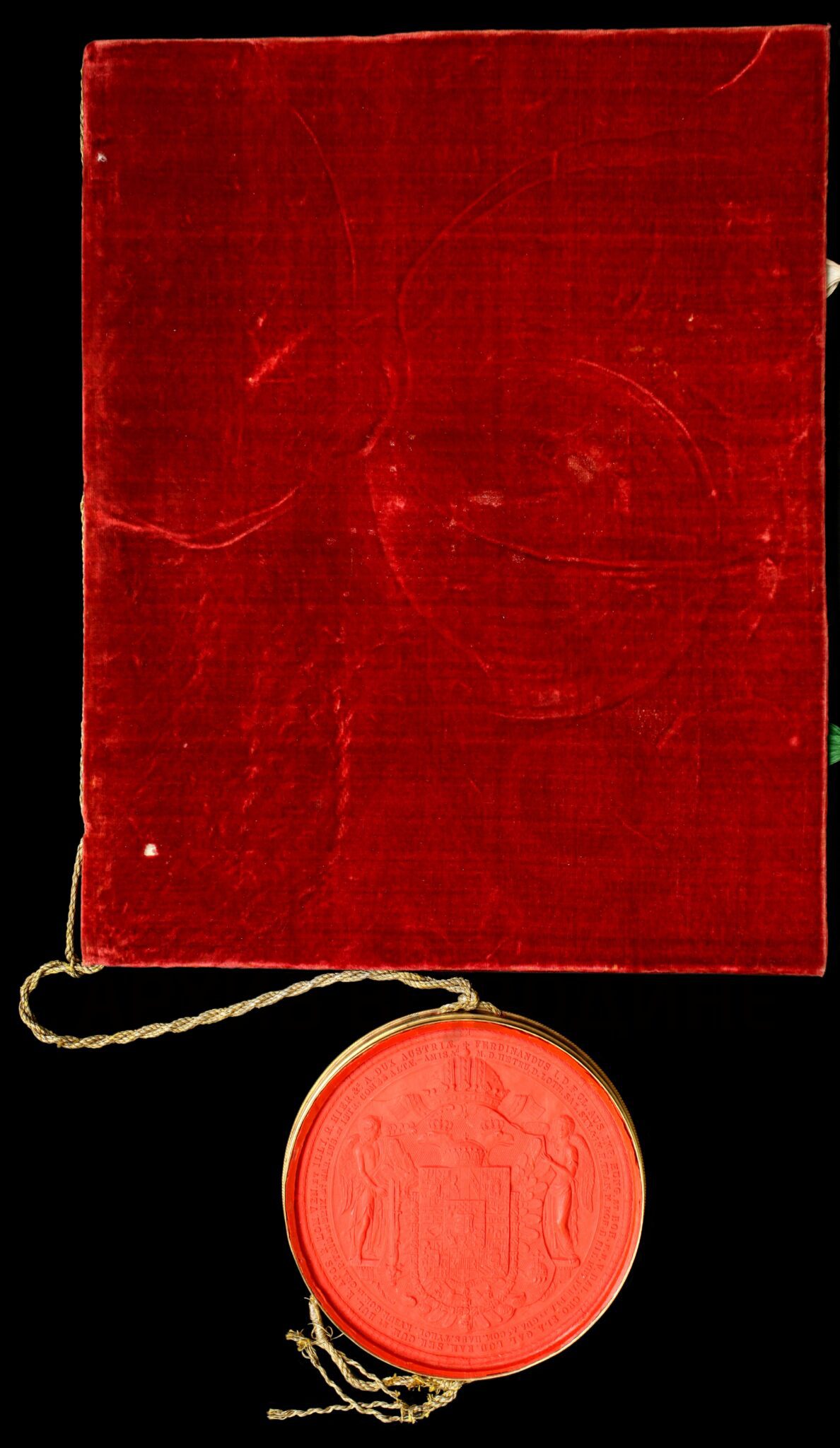 Пергамент, латински језик, 1 лист (велики формат), рукопис, очуван, воштани печат у дрвеној кутији.